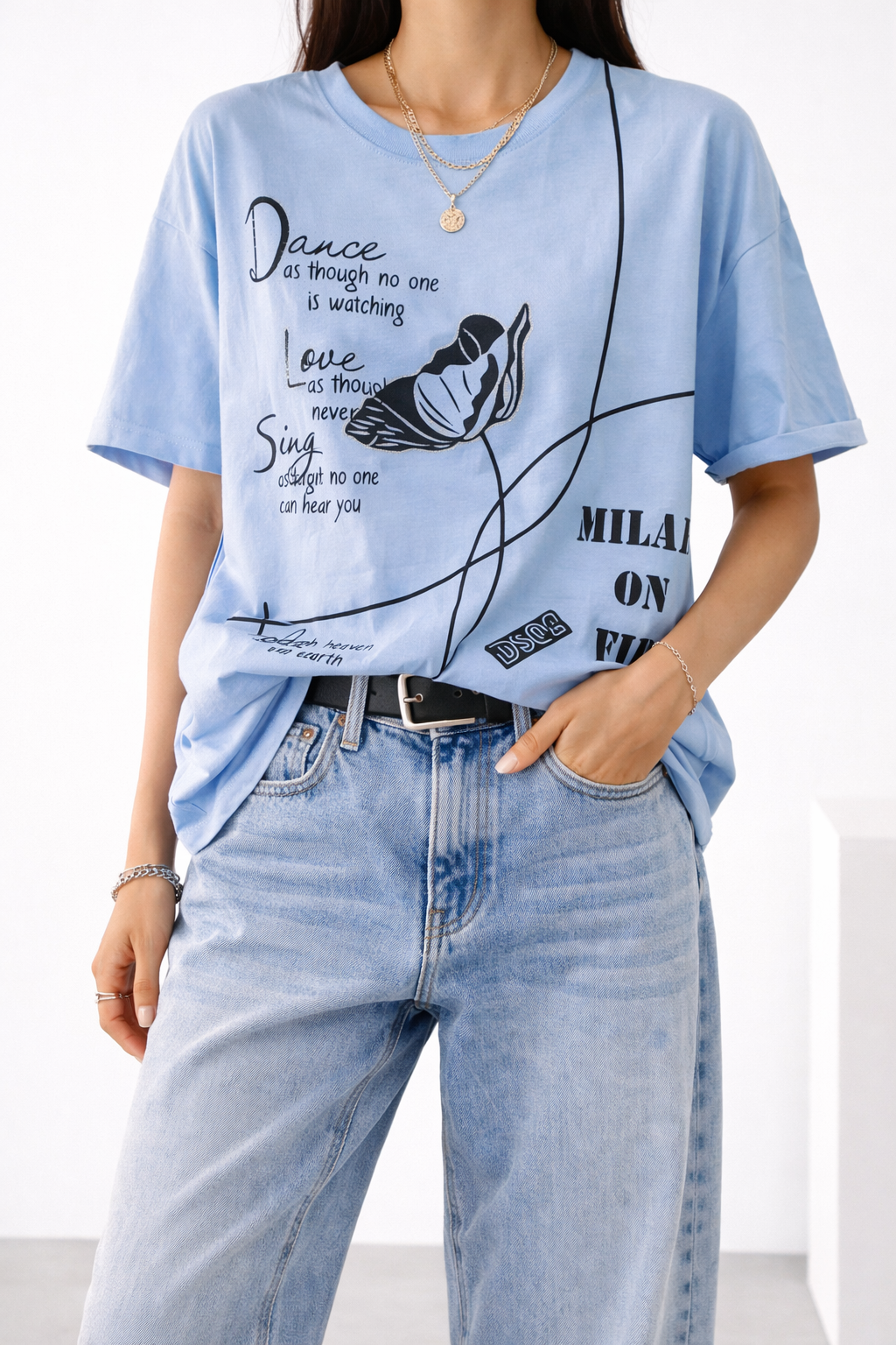 Confeccionada en tejido suave y ligero, ofrece comodidad para el día a día. Su corte relajado permite combinarla fácilmente con jeans, shorts o faldas para un outfit moderno y desenfadado.