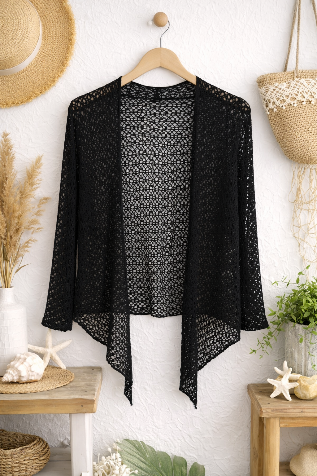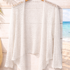 de un toque elegante y fresco a tus outfits de verano con este cárdigan playero de encaje ligero. Su diseño abierto y tejido transpirable lo convierten en la prenda perfecta para llevar sobre tu bikini, top o vestido durante días de playa, piscina o paseos al atardecer. Con mangas largas y un corte fluido que estiliza la silueta, combina comodidad y estilo en una sola pieza. Disponible en varios colores modernos para que elijas el que mejor se adapte a tu look veraniego. Ideal para vacaciones, salidas casuales o como capa ligera en climas cálidos. 🌴☀️