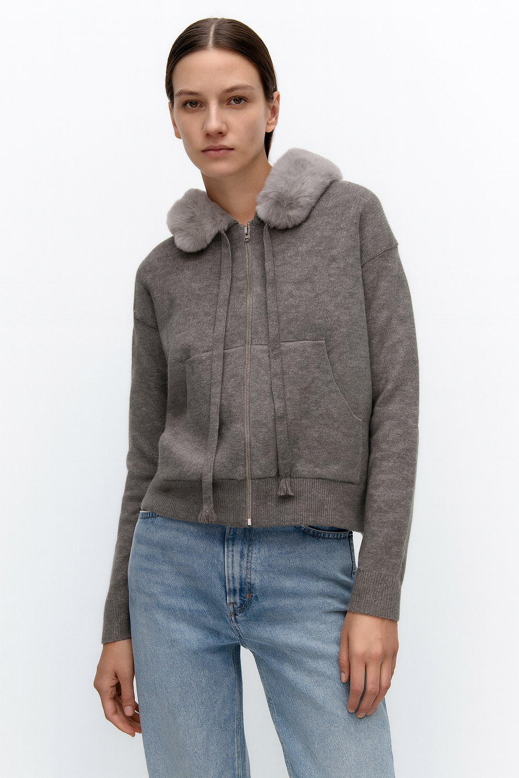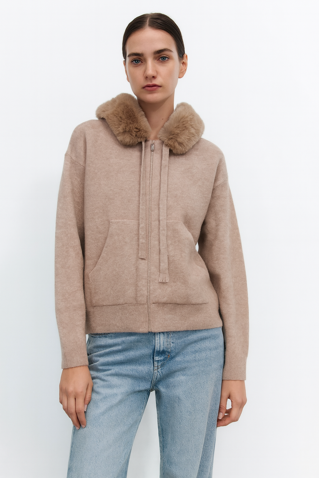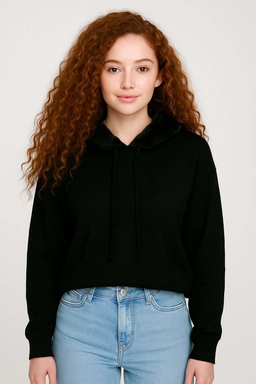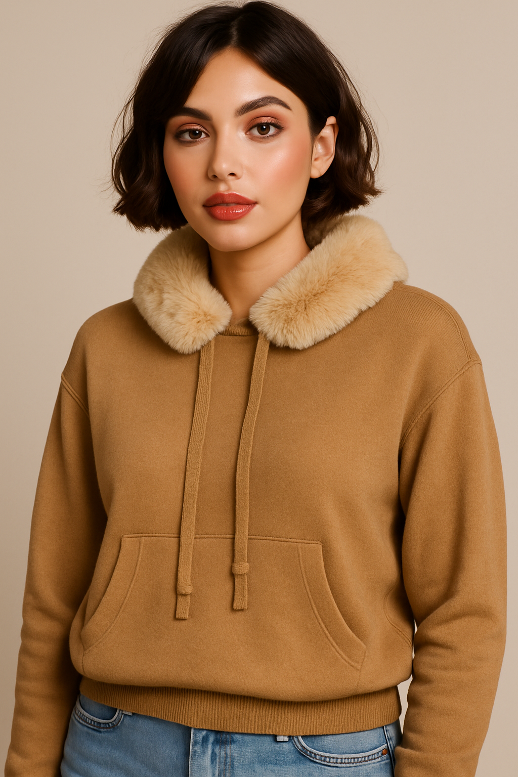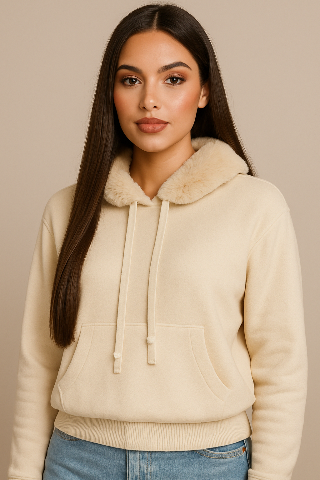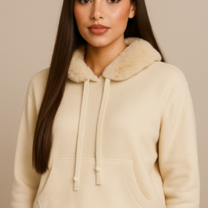 Este hoodie combina comodidad y estilo en una sola prenda. Cuenta con capucha ajustable, tejido suave y abrigado y un cuello interior tipo peluche, ideal para mantener el calor sin perder elegancia. Su diseño incluye bolsillo canguro y un fit relajado que ofrece libertad de movimiento y un look moderno. Perfecto para outfits casuales de invierno y para usar con jeans o joggers.