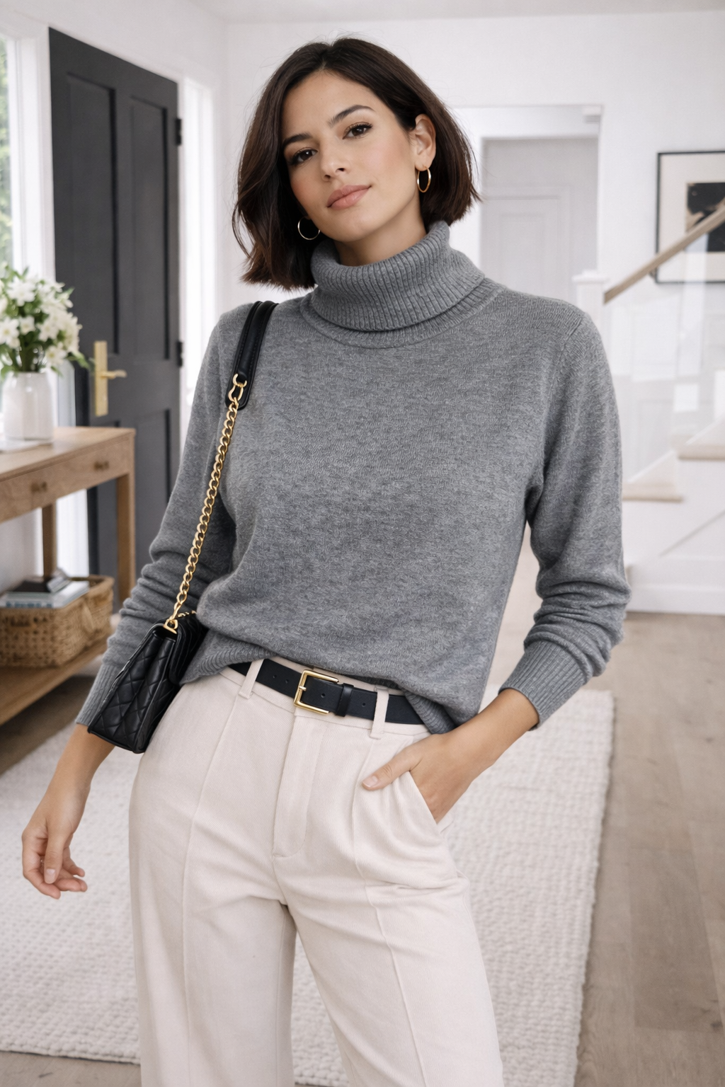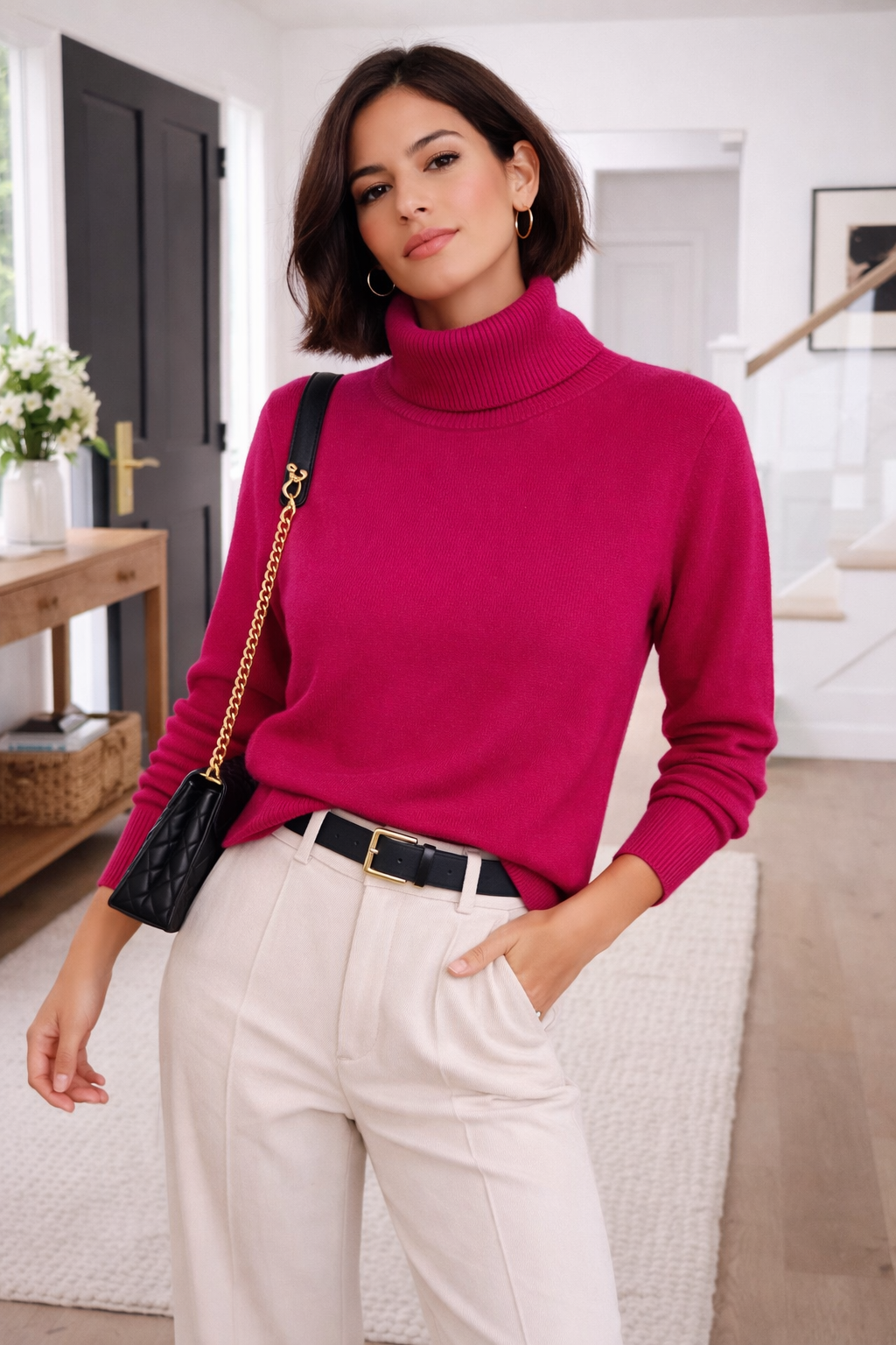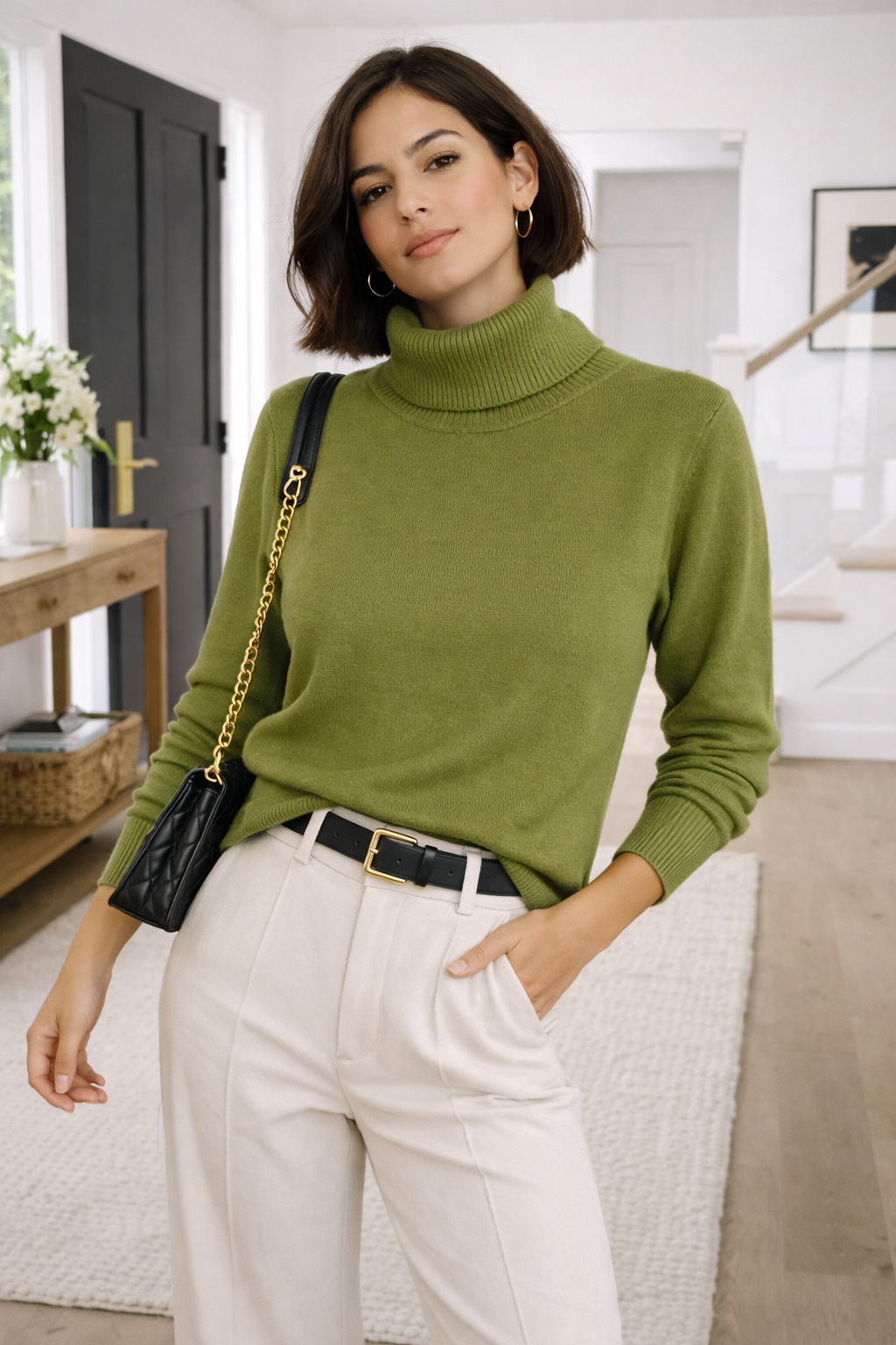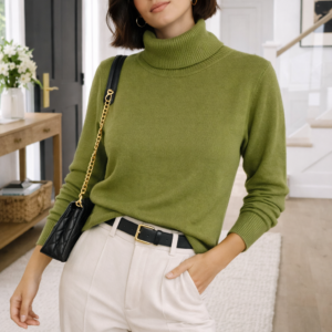 Suéter de cuello alto confeccionado en tejido suave y confortable, ideal para los días frescos. Su diseño minimalista y corte favorecedor lo convierten en una prenda versátil que se adapta fácilmente tanto a looks casuales como más elegantes. Perfecto para combinar con pantalones de vestir o jeans, ofrece un equilibrio ideal entre estilo, comodidad y sofisticación. Disponible en una variedad de colores modernos y atemporales.